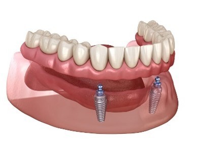 2~4本のインプラントを埋入し、その上に取り外し可能な入れ歯を装着する治療です。