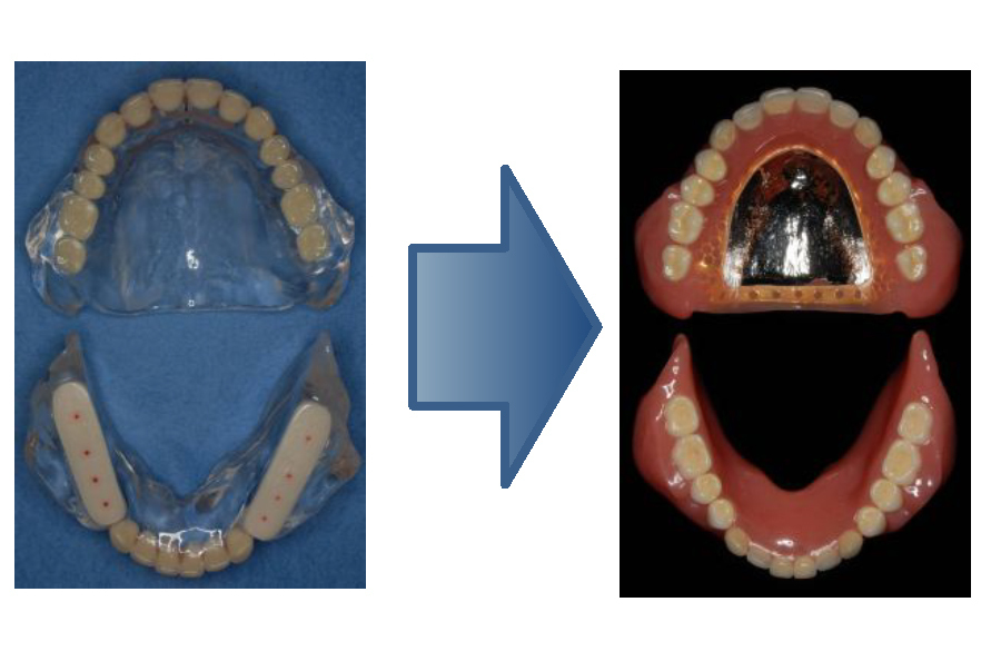 総入れ歯専用の「パイロットデンチャーシステム」を用いた入れ歯です。